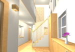 こげ茶色の屋根・白い外壁・吹抜けの玄関・広い浴室・・・。そしてキッチンが中心のLDK。フラット対面式のシステムキッチンのため、家族で一緒に広いカウンターで料理ができます。また、リビング側を向いているので疎外感がありません。リビングにはフルオープンサッシと、腐らない人木デッキテラスを設け、一体感のある広い空間になっています。エコカラットが特徴の階段を上ると,日当たりがよく将来仕切ることが出来る子供部屋、使い勝手の良いクロ-ゼットシステム収納が備えられた主寝室があります。階段の窓を開ければ南北の風が家中を通り抜け、快適に過せるでしょう。