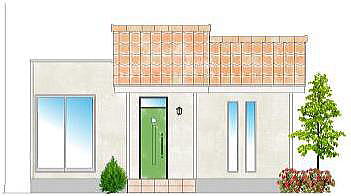 息子さん夫婦選定のクリーム色系タイル調サイディング。 |